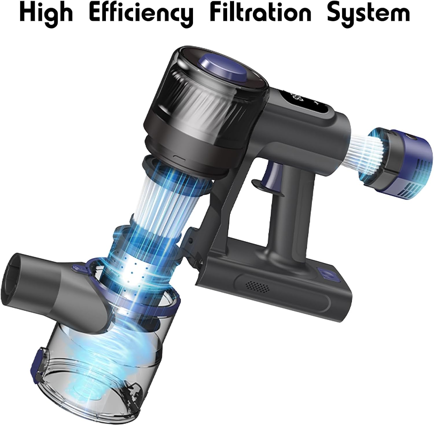 Cordless Vacuum Cleaner, 8-in-1 Lightweight Stick Vacuum with 45mins Runtime, Powerful Suction, Rechargeable Cordless Vacuum for Carpet, Tile, Pet Hair, Hardwood Floors, Black